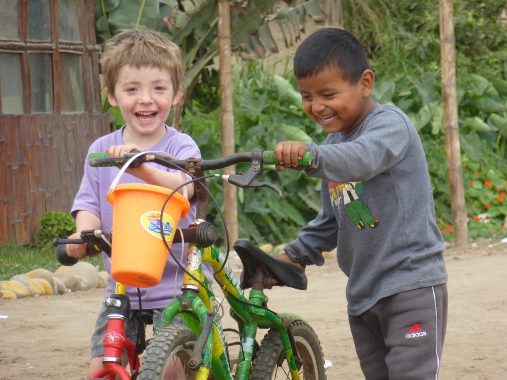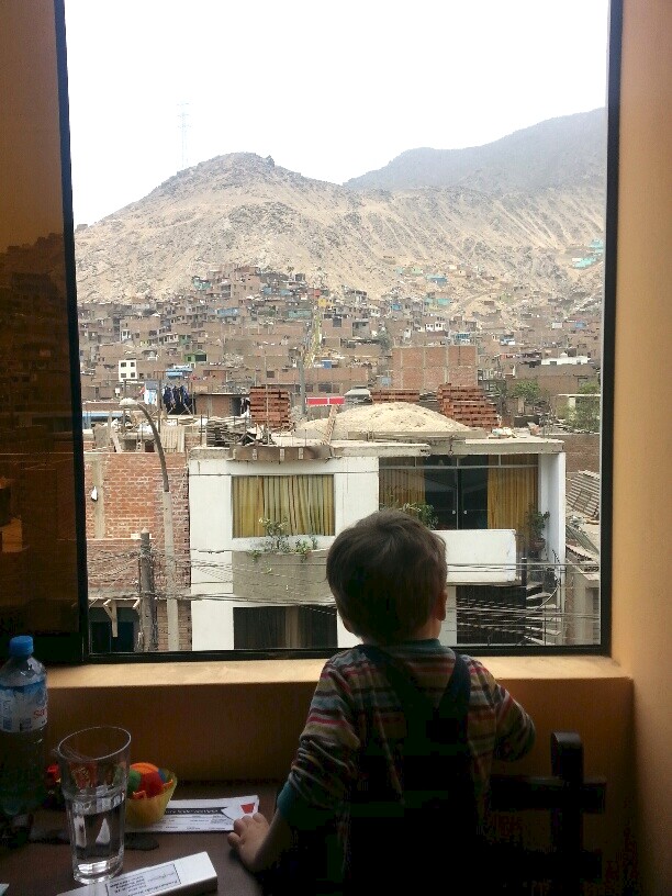 Im knatternden Propellerflugzeug sind wir also nach Cajamarca geflogen. Unsere erste größere Reise im Land! Jakob darf vorm Start einmal ins Cockpit und will danach sofort Pilot werden. Falls das mit der Mototaxi-Karriere nichts werden sollte. In Cajamarca kommen wir mit unserem Kollegen Edwin in der Hospedaje Los Jazmines unter, eine Empfehlung eines Kollegen von Grufides (Netzwerkpartner von Red Muqui). Eine sehr gute Empfehlung! Mitten im Zentrum gelegen, mit Garten, Café mit wirklich gutem Kaffee und sehr netten (holländischen) Betreibern. ERoJa bleiben dort und erkunden in den darauffolgenden Tagen die Stadt und Umgebung, während Ma(ttes) mit seinem Kollegen weiterfährt nach Celendín und mit Arbeitsgruppen sozio-ökologische Konflikte und Folgen von Mega-Bergbauprojekten im Land kartiert. Das Ergebnis der Arbeitsgruppen, Workshops und Diskussionsrunden auf diesem dreitägigen Kongress sind konkrete Forderungen an die Politiker des Weltklimagipfels, um auf die verheerenden Folgen des aktuellen Entwicklungsmodells für ländliche Regionen und Bevölkerungsgruppen aufmerksam zu machen.