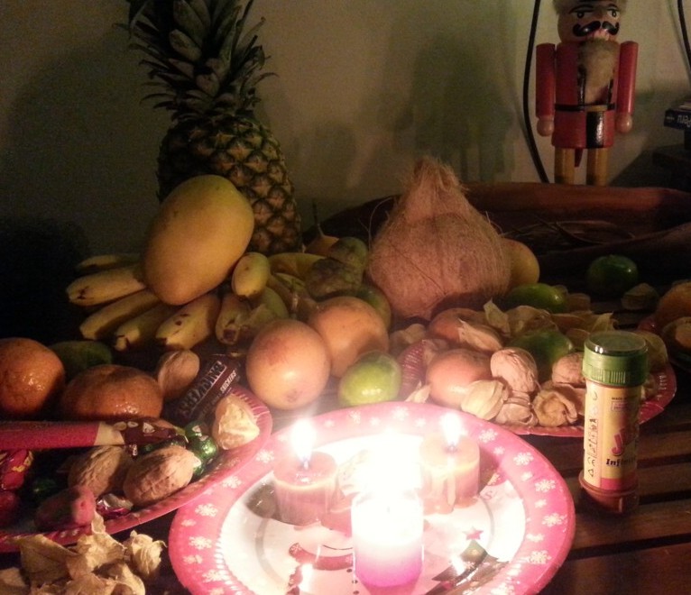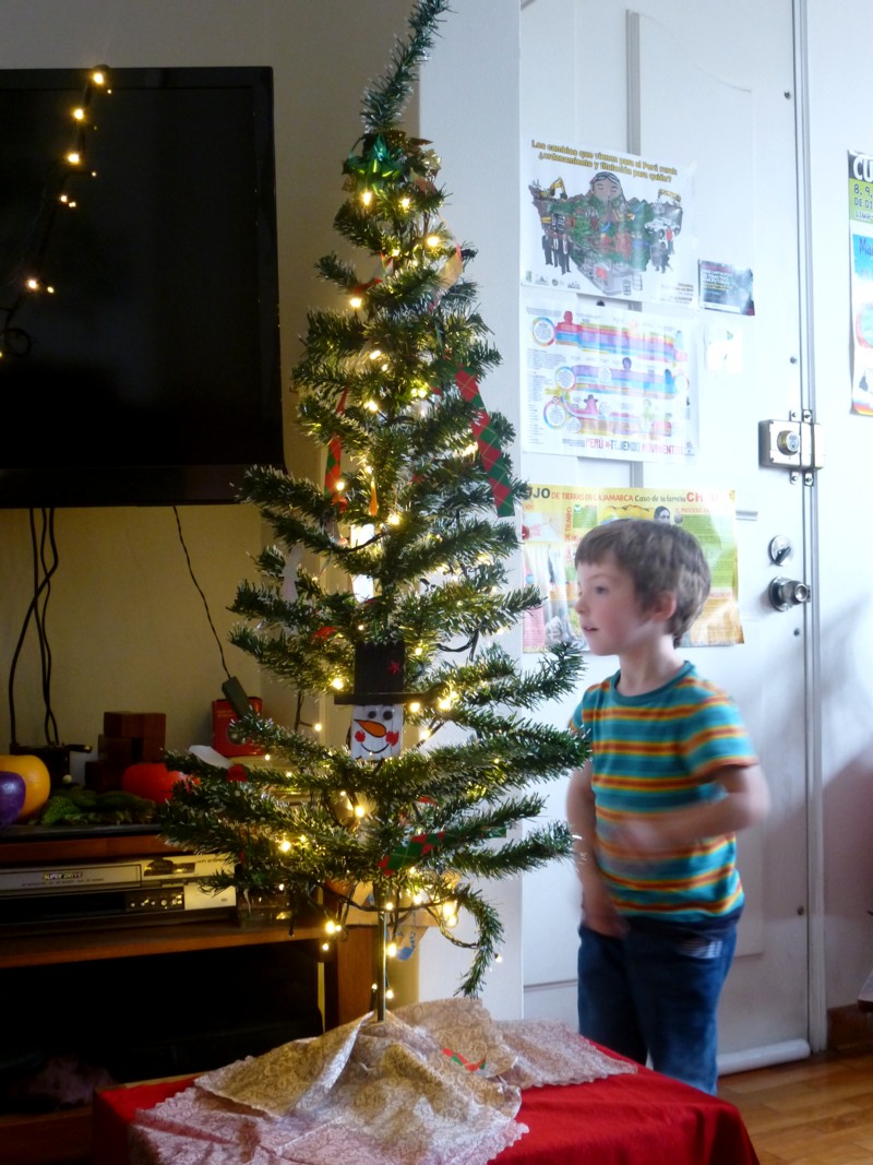 In diesem Jahr haben wir sämtliche Weihnachtsrituale und Familientraditionen hervorgeholt, die uns eingefallen sind. Es ist nicht das erste Mal, dass wir Weihnachten auf der Südhalbkugel feiern. Aber das erste Mal mit Kindern. Und das erste Mal als Kleinfamilie. Und nun soll es bitteschön s20141225_004652o richtig weihnachtlich sein, dunkel und kalt wie auf der Nordhalbkugel, mit Tannenzweigenduft und Marzipankartoffeln. Aber draußen sind es 25 Grad, in der Wüstenstadt Lima gibt es weder Tannen noch Marzipankartoffeln. Was tun? An den Strand fahren? Weihnachten ignorieren? Bis zum 23. sind wir unschlüssig. Dann gehen wir zum Markt und kaufen einen Plastiktannenbaum. Mit weißen Schneespitzen, P1030937wegen des authentischen Flairs. Eine Lichterkette. Hängen Papierkugeln, Knete und Bonbons an die grünen Plastikzweige, die ganz authentisch rieseln. Hören Rolf Zuckowskis „In der Weihnachtsbäckerei“ rauf und runter. Für die Eltern „I’m dreaming of a White Christmas“. Machen in der Abenddämmerung einen Spaziergang in unseren Lieblingspark. Als wir zurückkommen, sind die Lichter am Tannenbaum an, es brennen Kerzen, auf dem Tisch Früchte und die Kokosnuss, die an Weihnachten nie fehlen darf, unterm Baum ein paar Geschenke. „Der Weihnachtsmann war da!!! Jippie!!!“ ruft Jakob und hüpft auf einem Bein durch die Wohnung. Später gibt es Kartoffelsalat mit Würstchen und Schokoeis. Der Abend wird lang und zauberhaft. Um Mitternacht steigen Raketen in den Himmel, es knallt und funkelt. Feliz navidad, Lima hermosa.