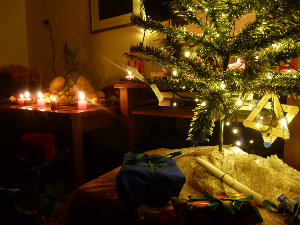 IMG_20141224_204736_kleiner24. Dezember. Abenddämmerung. Dialog mit Jakob: „Mama, kommt der Weihnachtsmann wirklich nach Peru? – Ja. – Und auch nach Berlin? – Ja. – Und wie kommt er bei uns ins Haus rein? – Vielleicht hat er einen Schlüssel. – Und hat er auch einen Esel wie der Nikolaus? – Nee, der hat einen Schlitten, der fliegen kann. – Wirklich? Toll!!“ Große Augen. Das Leben als 3jähriger ist zauberhaft. An Weihnachten ganz besonders.