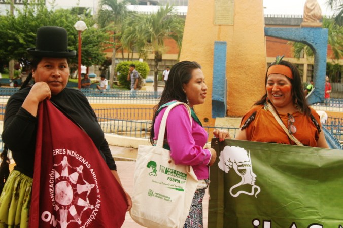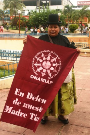 Im Zentrum protestierten mehr als 120 indigene Führer (Apus) aus dem Regenwald im nördlichen Departamento Loreto, Vertreter von fast 50 Gemeinden in der Region, gegen die gewaltigen Umweltverschmutzungen in ihren Gebieten. Im letzten Jahr sind immer wieder Erdöl-Pipelines gebrochen und verseuchen Wälder und Flüsse. Seit Monaten protestieren fast fünfzig Gemeinden der Flusseinzugsgebiete der Flüsse Marañón, Tigre, Pastaza, Chambira und Corriente, sie fordern ein Ende der Erdöl-Aktivititäten und Entschädigung für die letzten 40 Jahre exzessiver Ölförderung.